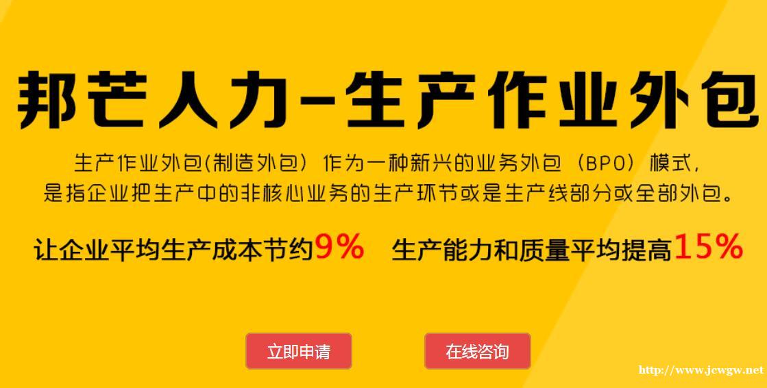 生产作业/业务流程外包是岗位外包的延伸产品,就是贵公司的一些非核心的业务或加工方式都交给我们(邦芒人力)来做,达到降低成本、分散风险、提高效率、增强竞争力的目的。